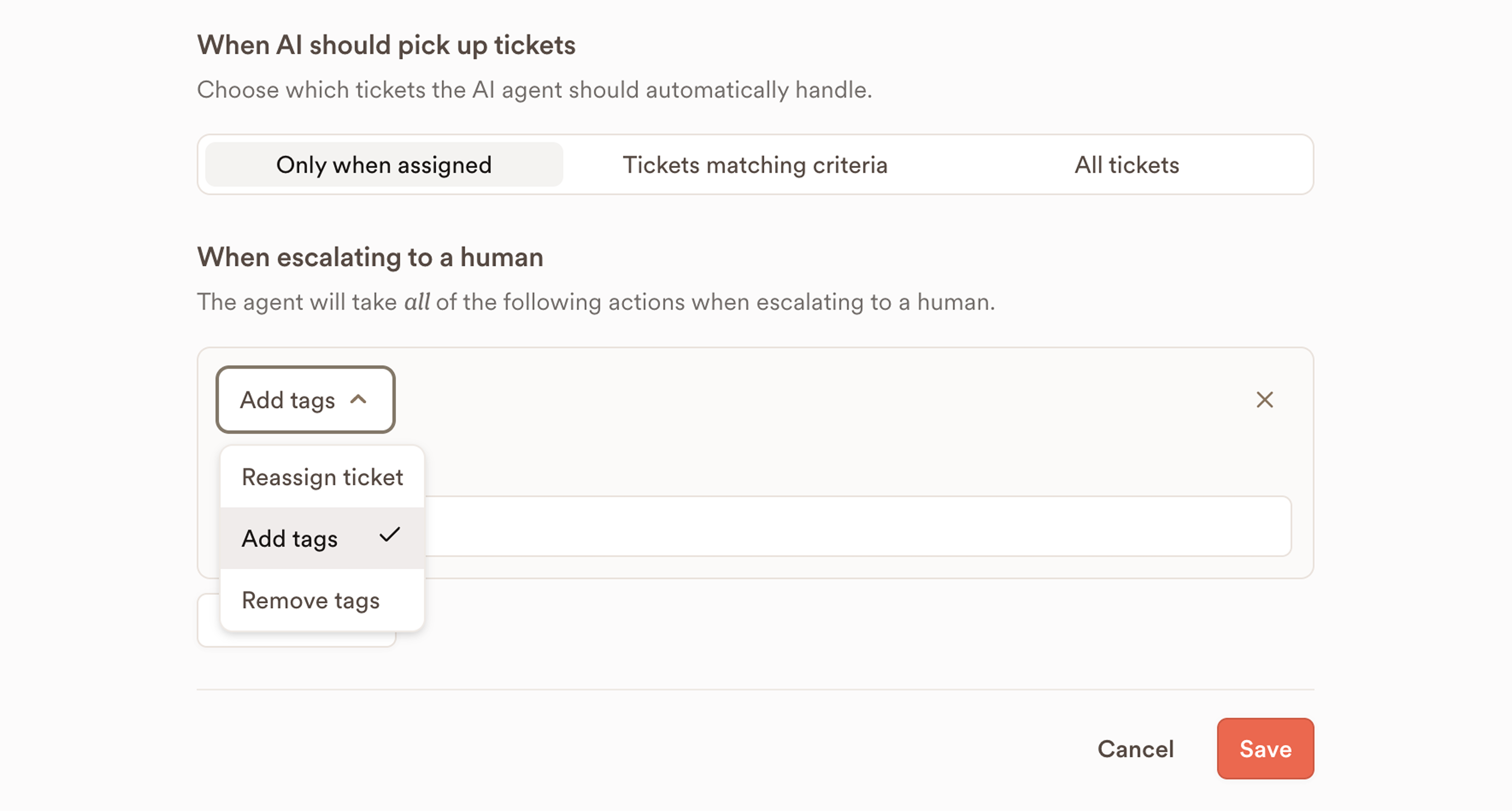 Create tickets when human support is needed and route them to the right team with full context, ensuring nothing falls through the cracks.
